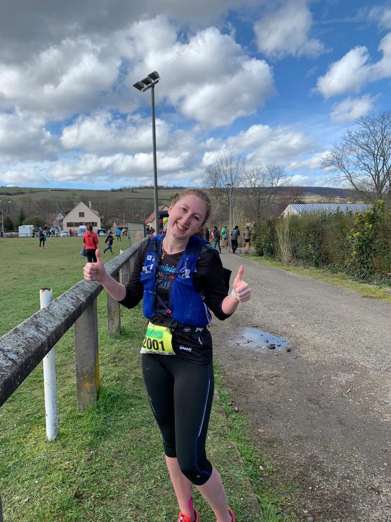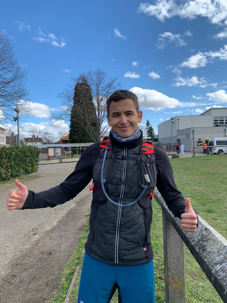 Après un départ avec mes copains du CRC, détendu, je commence ma course au feeling et aux sensations. Je monte doucement en puissance avec en tête mon objectif de temps de 6h30. Pas de difficultés jusqu’au 20ème km mais par la suite tenir le rythme sur la neige dès 1000m est compliqué, je mets quelques km à trouver mon rythme et l’arrivée au petit ballon fait bien plaisir, le plus dur est fait. La fatigue se fait un peu sentir après le 34ème km, col du Boenlesgrab après quelques chutes grâce à la boue en descente, pas de casse mais quelques crises de rires, mais je gère plutôt bien jusqu’au couvent de Schauenberg. Je reste dans ma bulle pour les 7 derniers km avec un « single » comme on les aime mais en début de course. Je finis finalement en 6h50 très content de cette journée et déjà les yeux tournés vers la prochaine course.