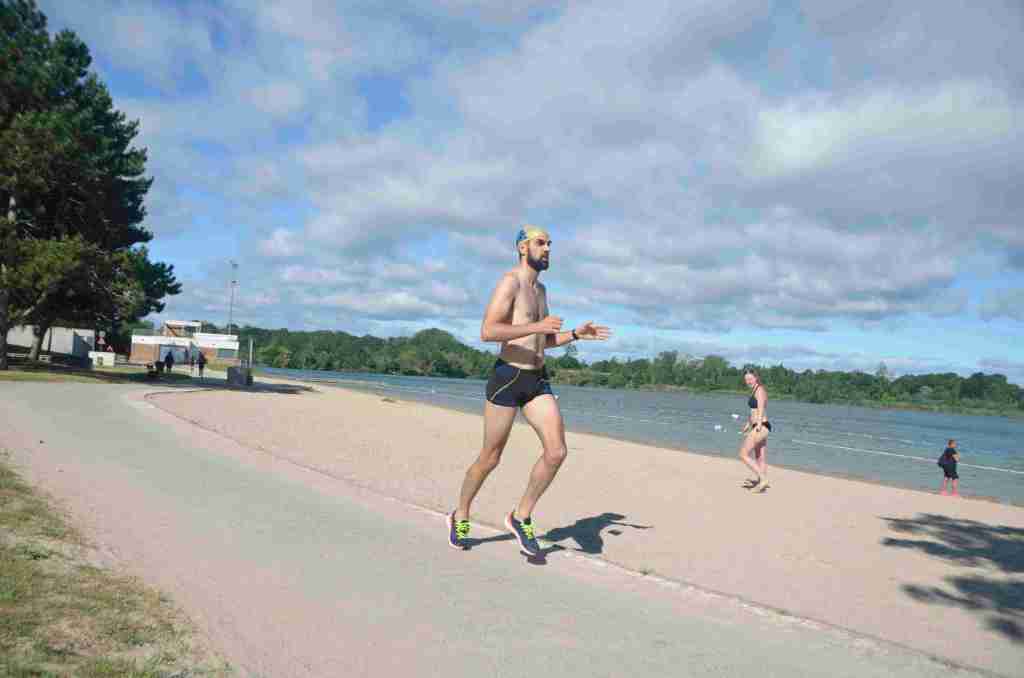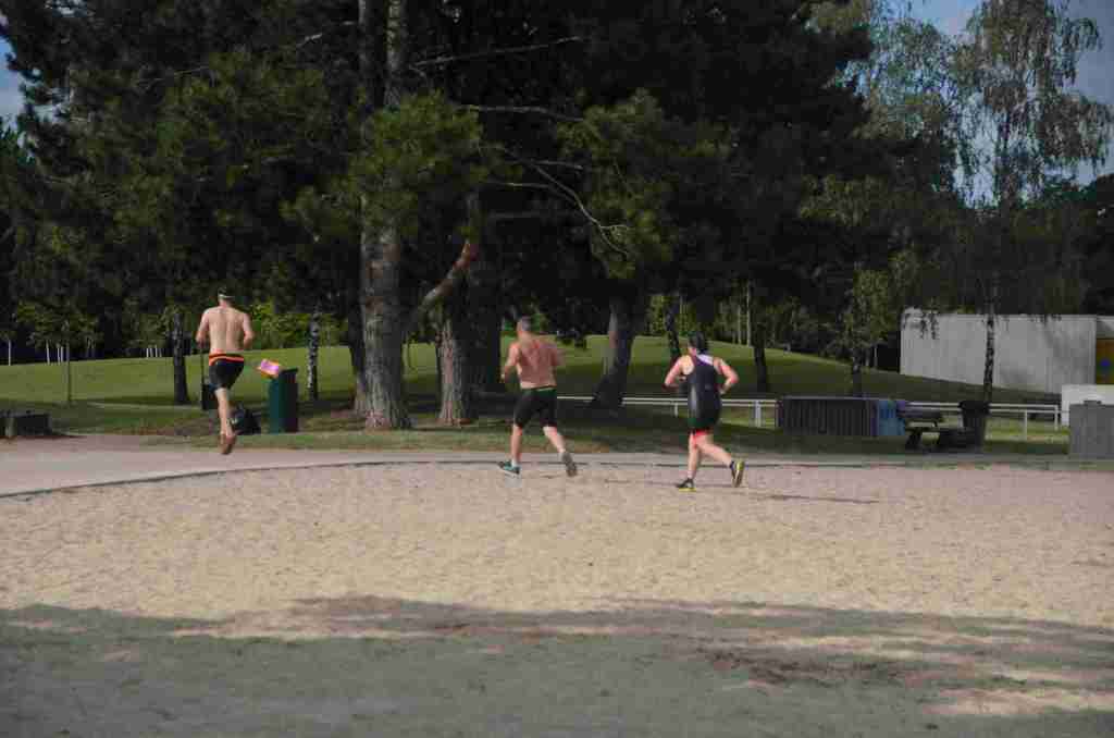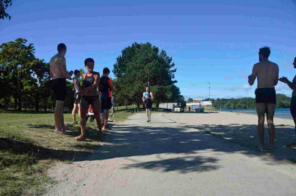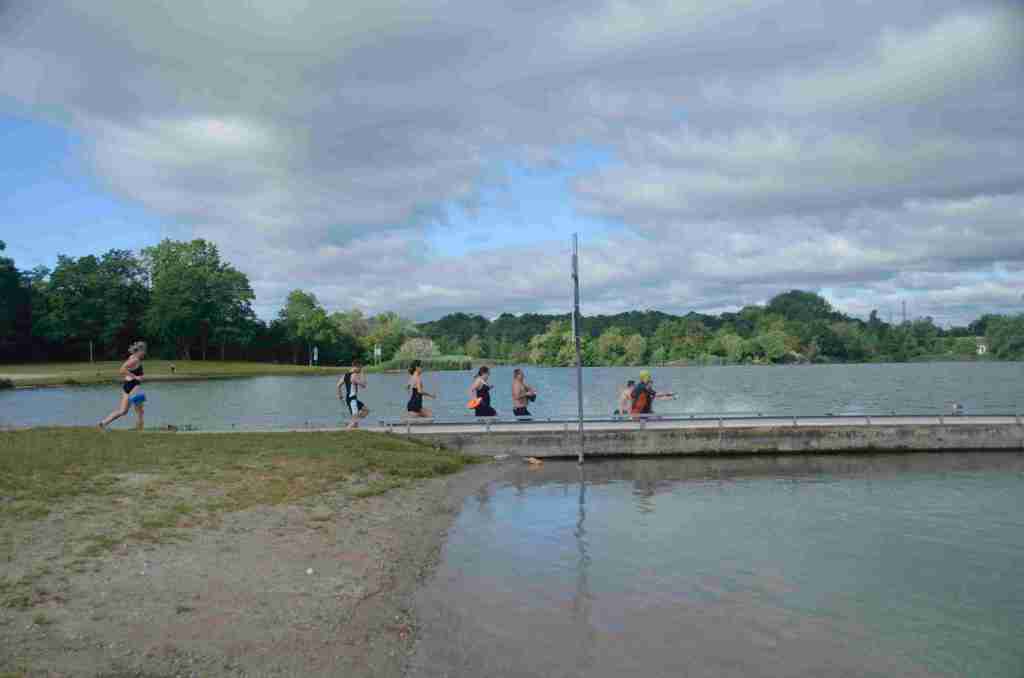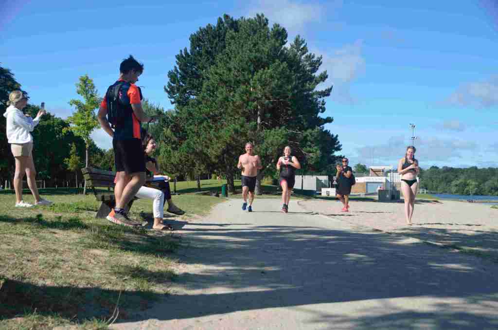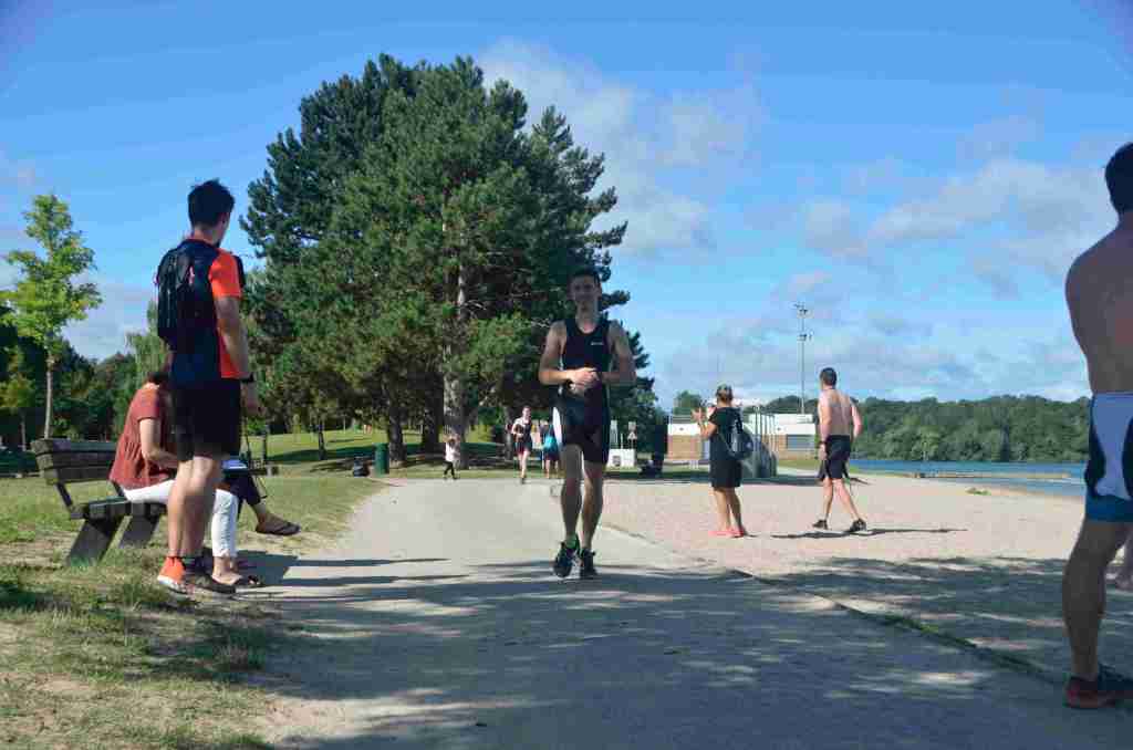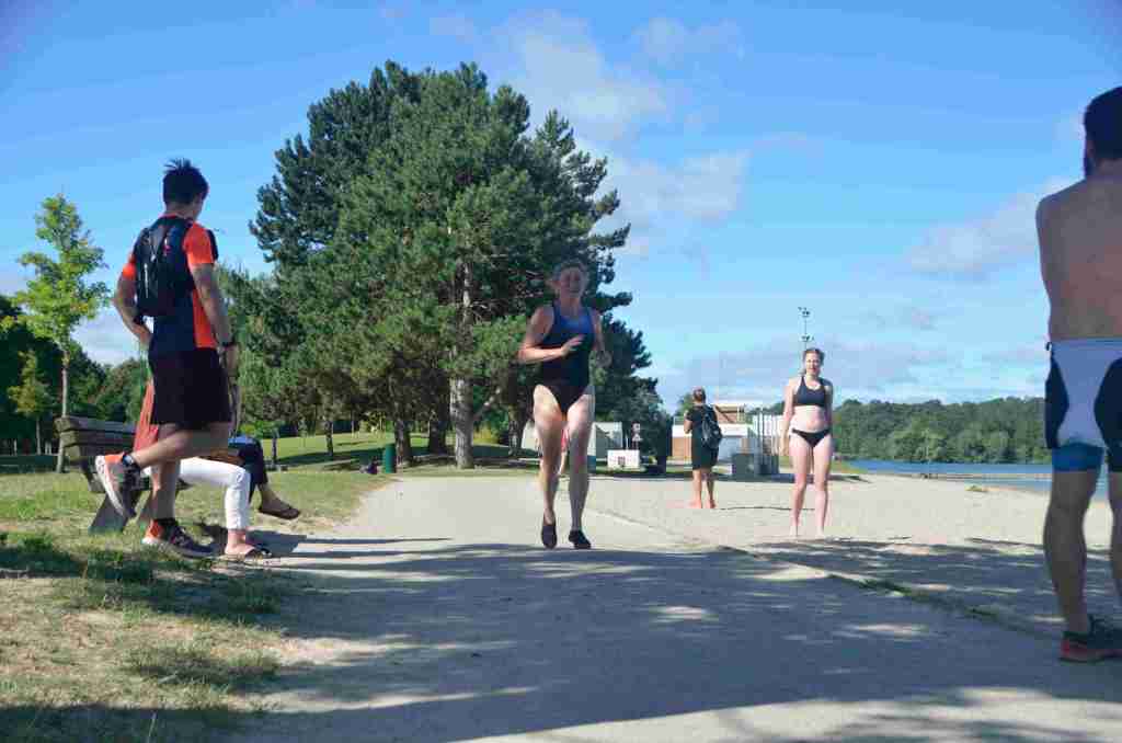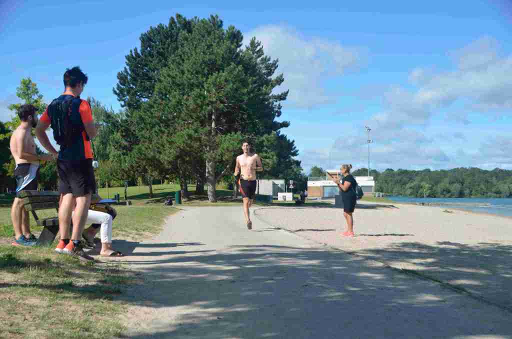 3 successions de nage+course sont réalisées avec 150m environs de nage et 750m de course à pied avec un tour de lac pour la dernière course de 2km.