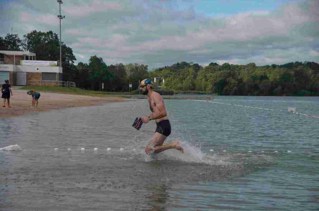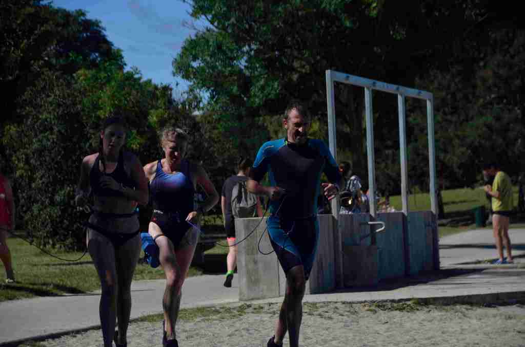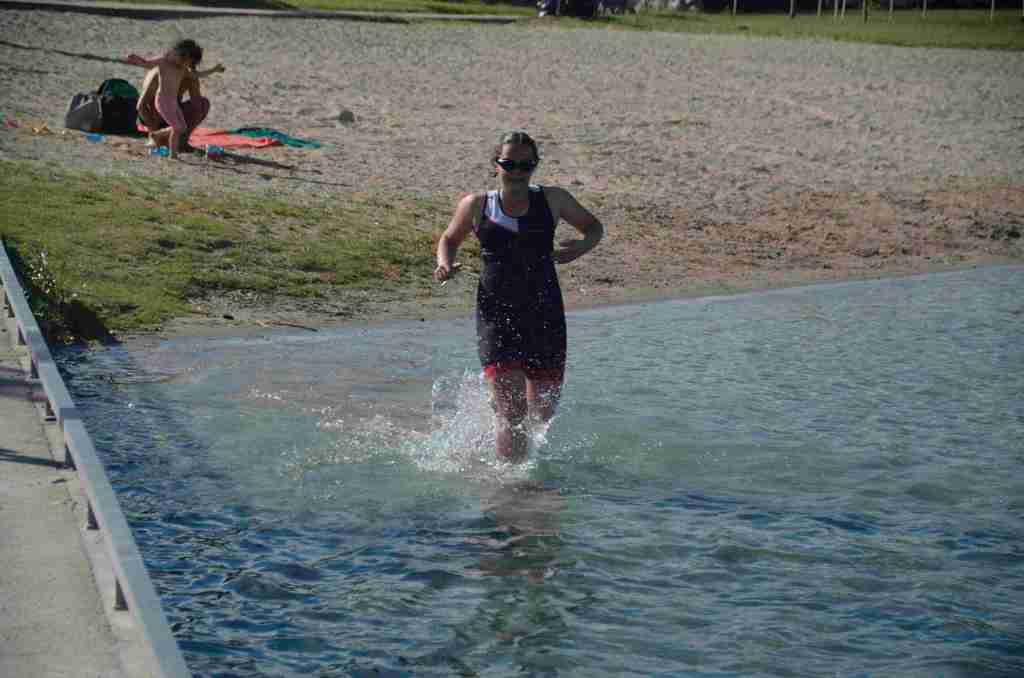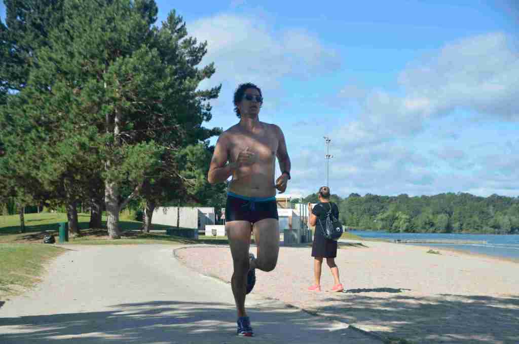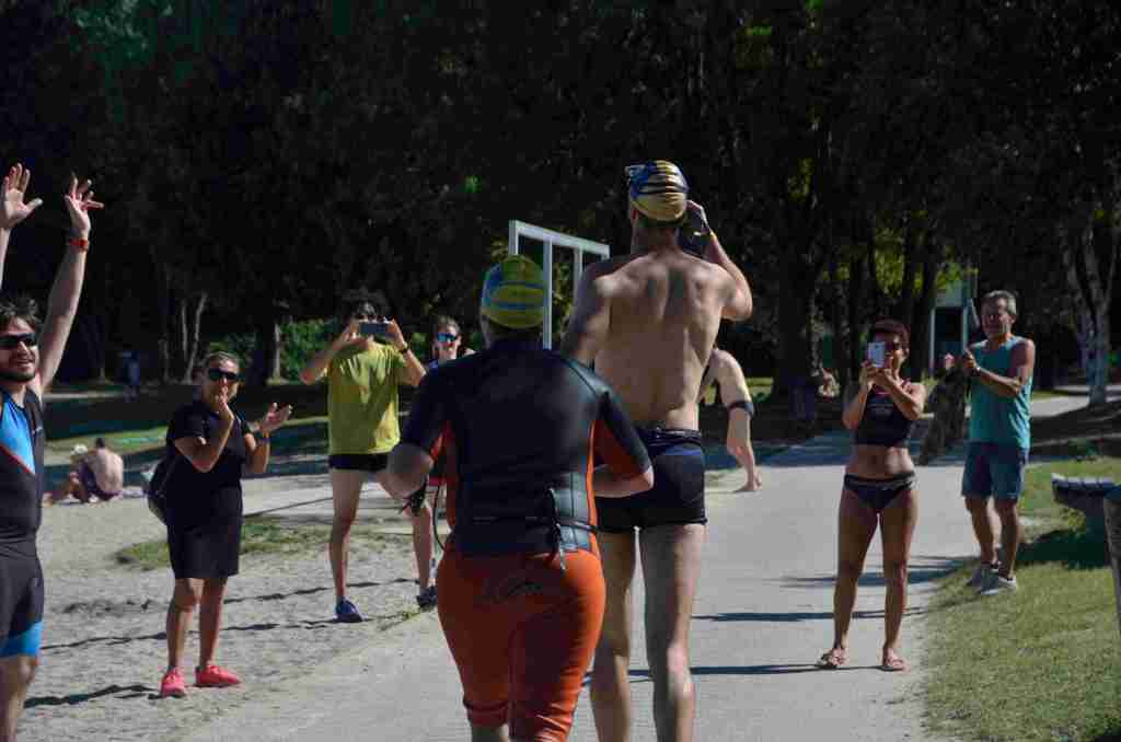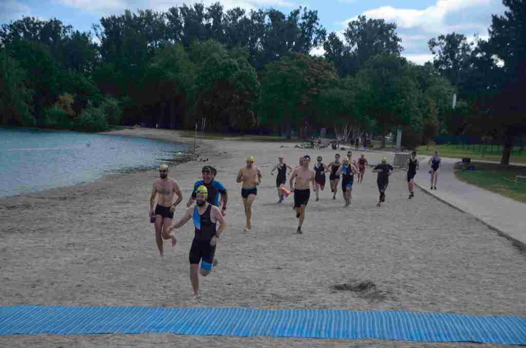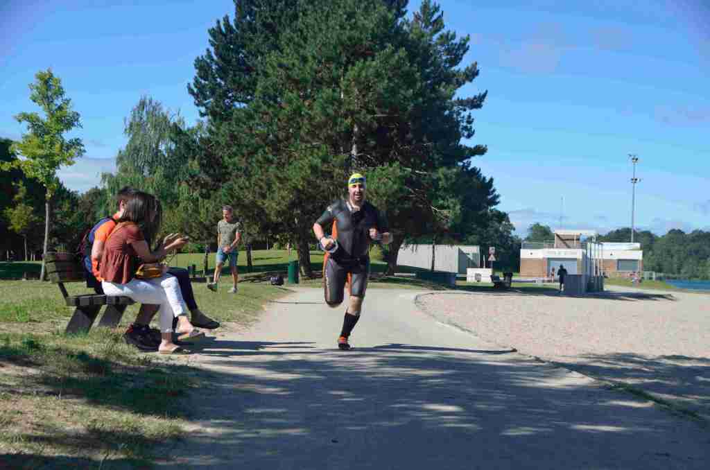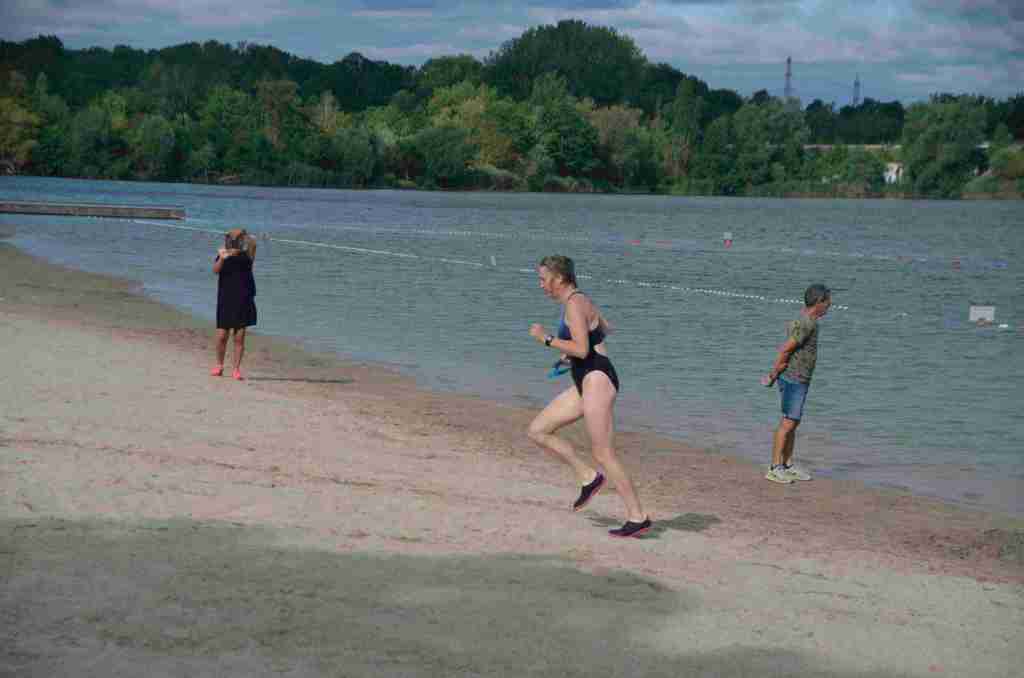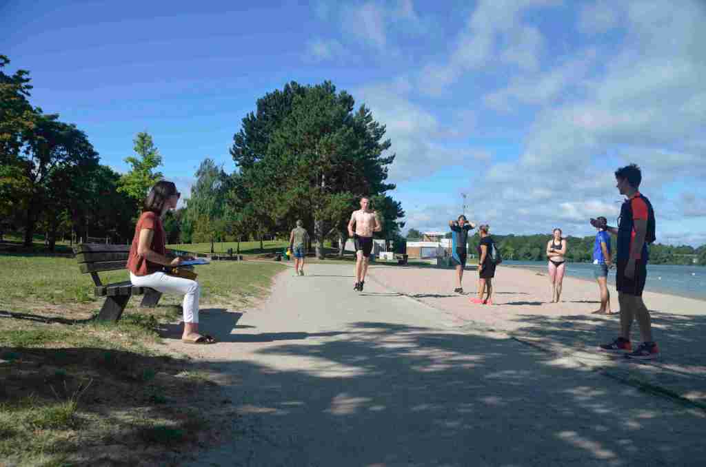 3 successions de nage+course sont réalisées avec 150m environs de nage et 750m de course à pied avec un tour de lac pour la dernière course de 2km.