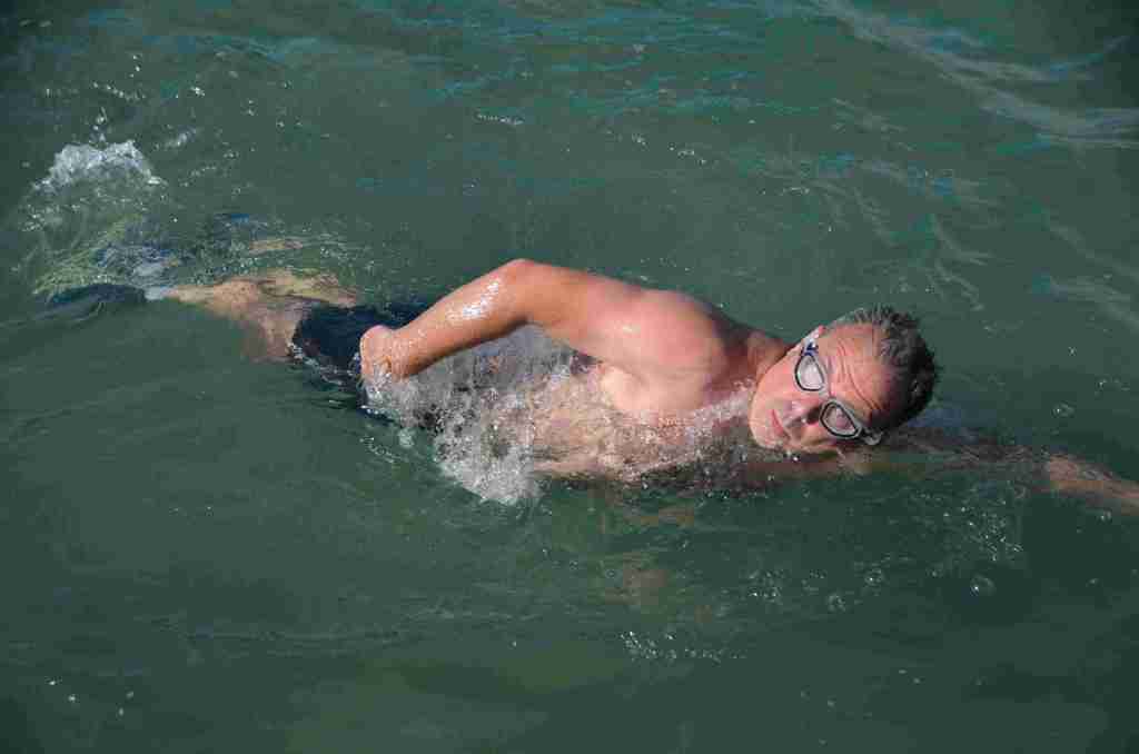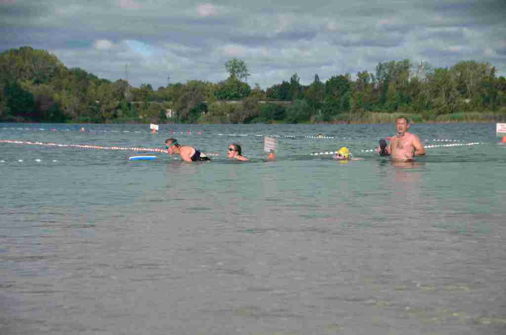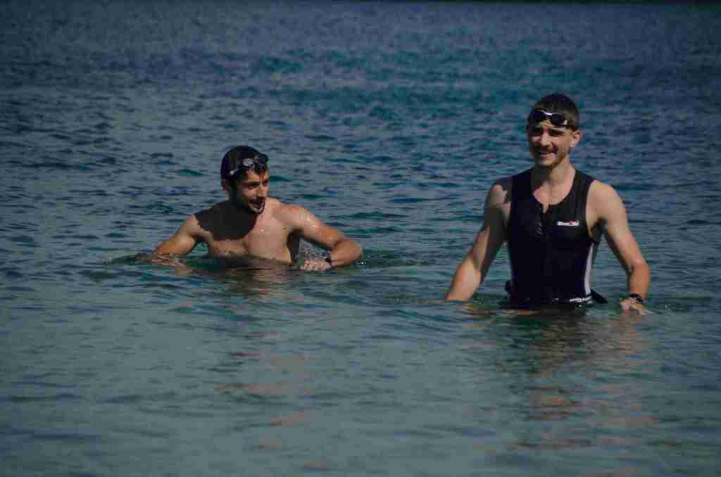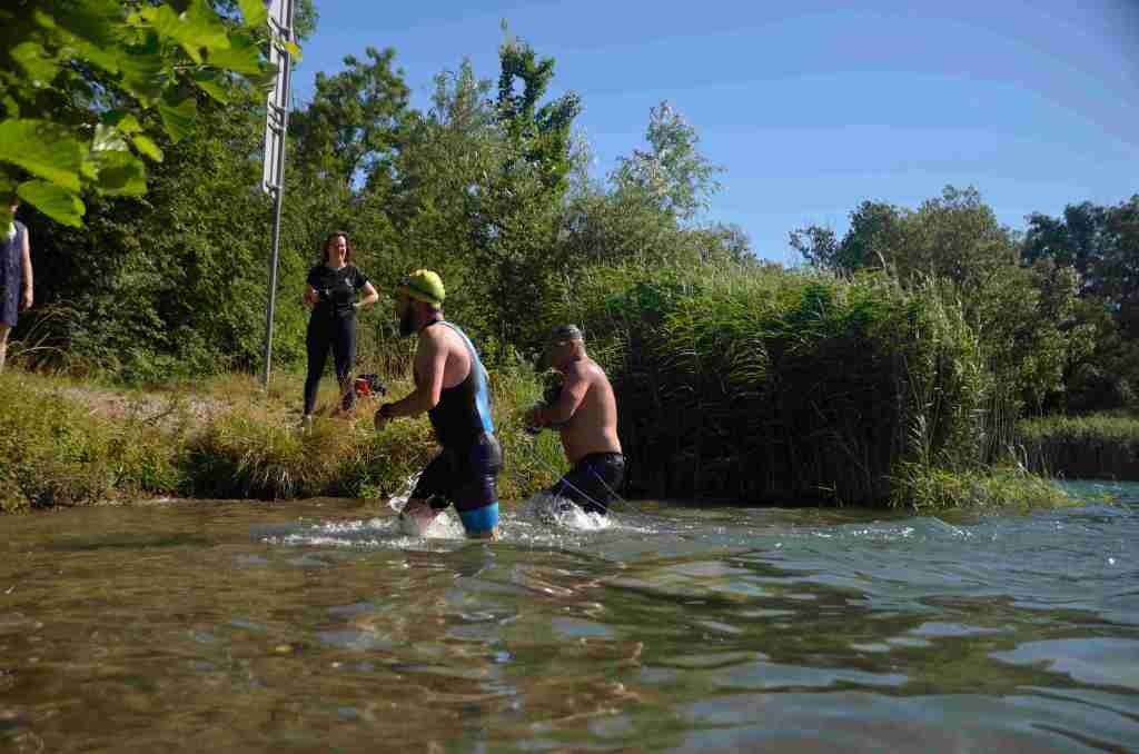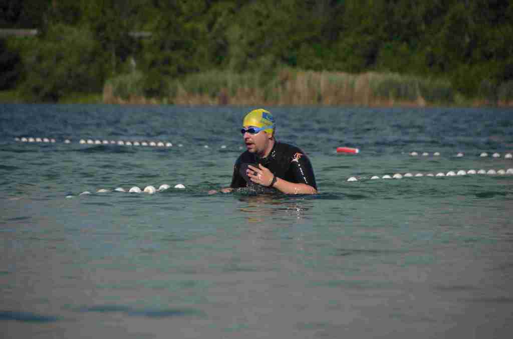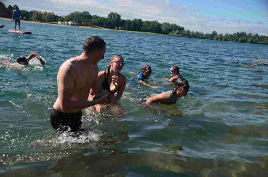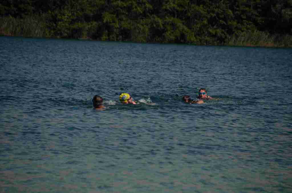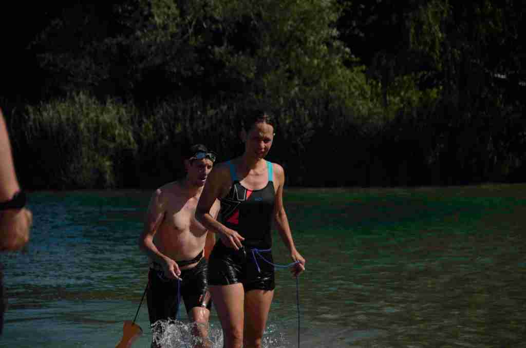 Au programme, une traversée du lac de 300m à la nage, puis un tour de lac à pied avant de refaire la traversée inverse à la nage pour finir.