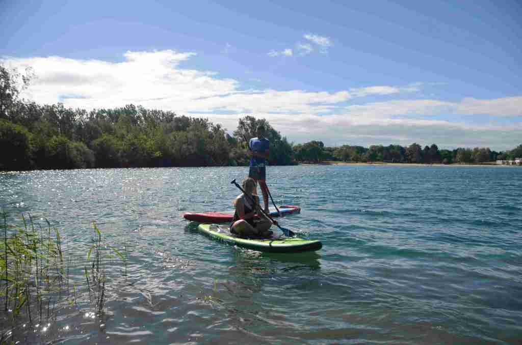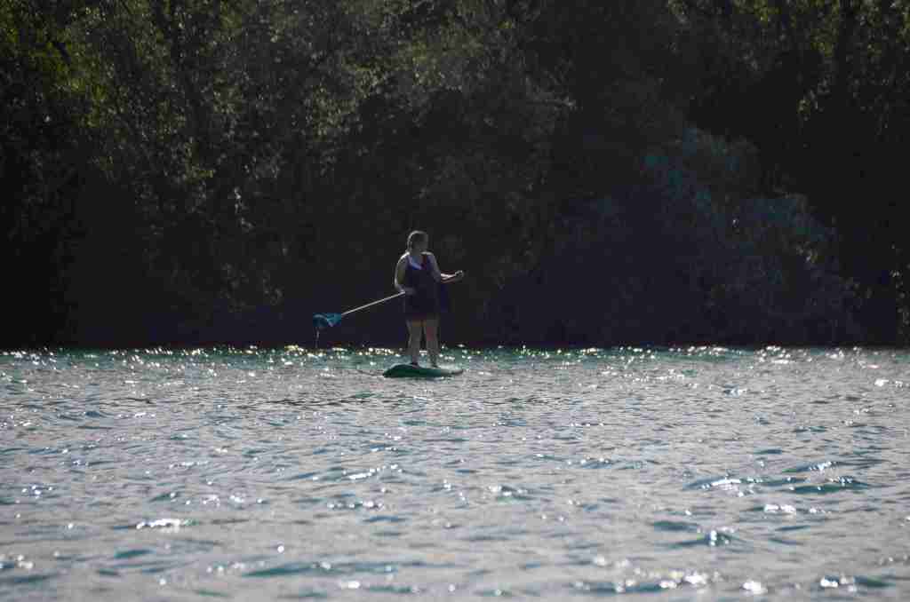 La traversée est en marche, on apprivoise peu a peu la longe qui s’emmêle dans les pieds pour certains et sous la surveillance des paddles menés par Pauline et Justin mais également des yeux des accompagnants de part et d’autre de la ligne droite.