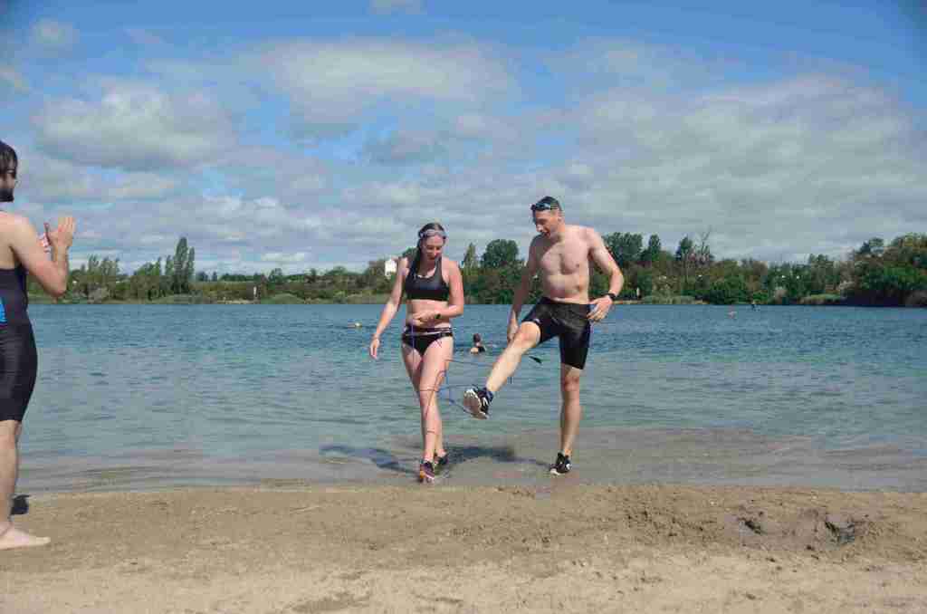 Après près de 30min intenses, les premiers en finissent après un tour de lac à pied. L’ensemble des runners arrive au fur et à mesure.