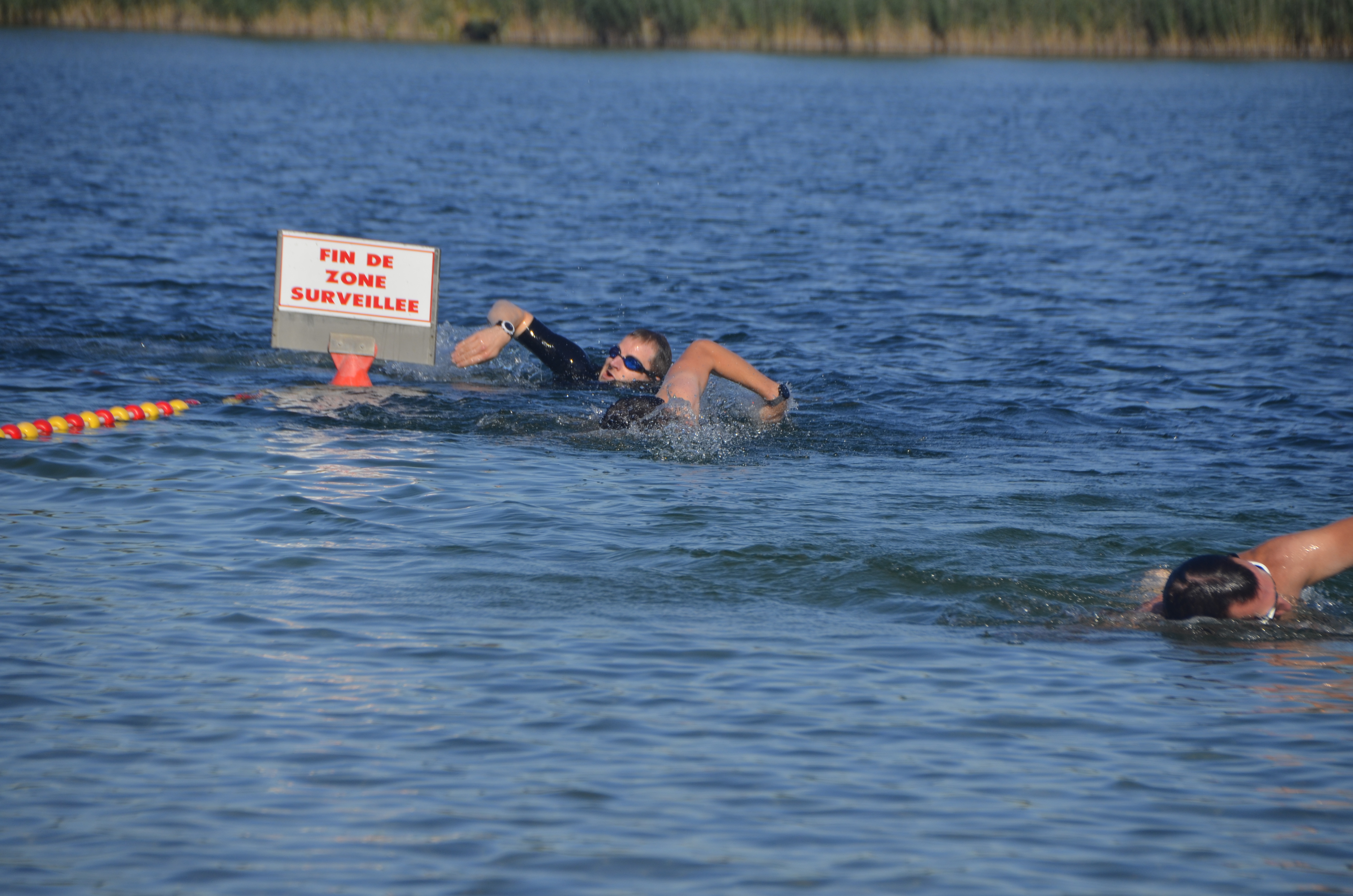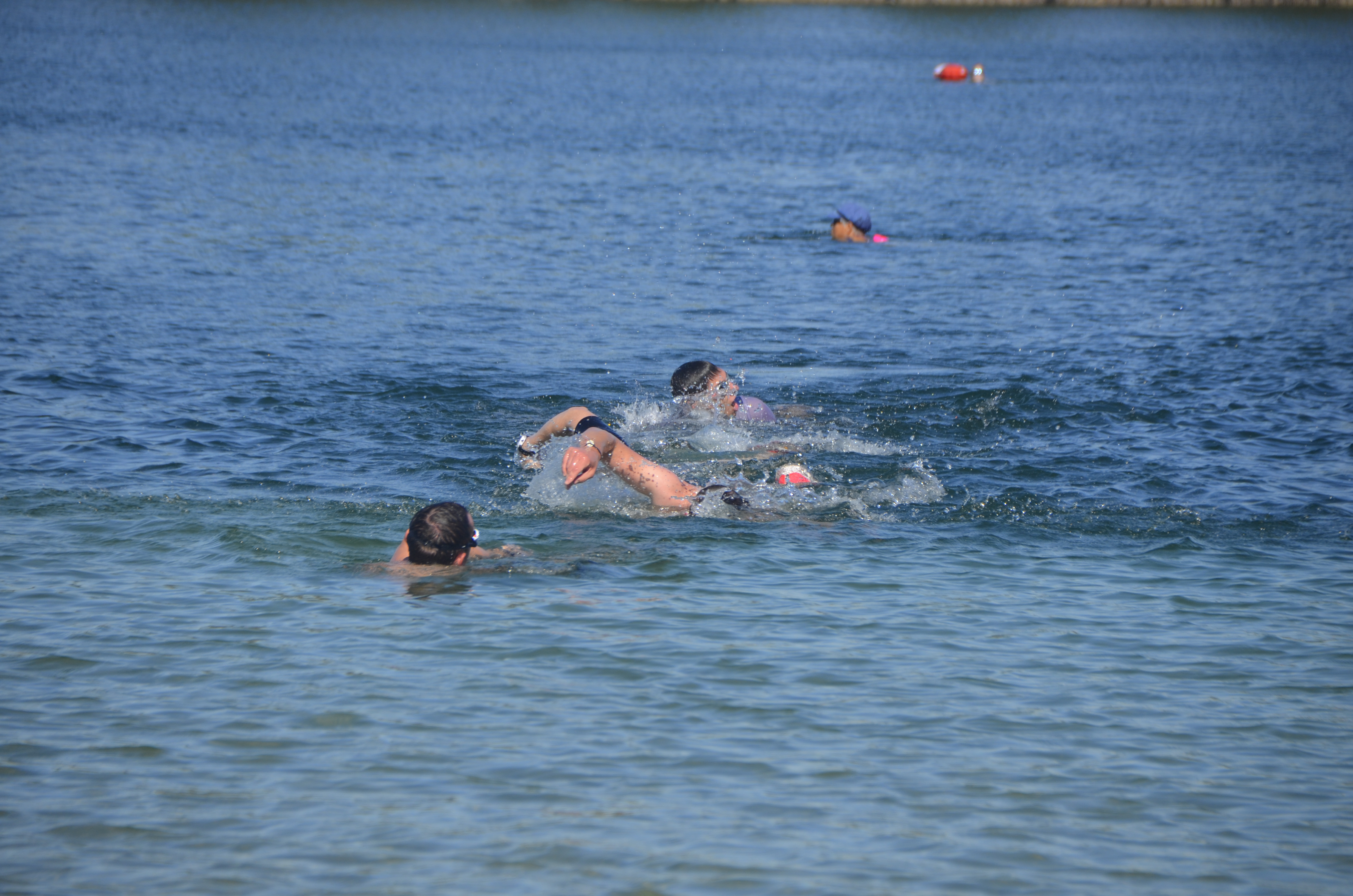 La nage est la encore très serrée, les écarts sont faibles, on voit tout le monde les uns derrières les autres de loin.