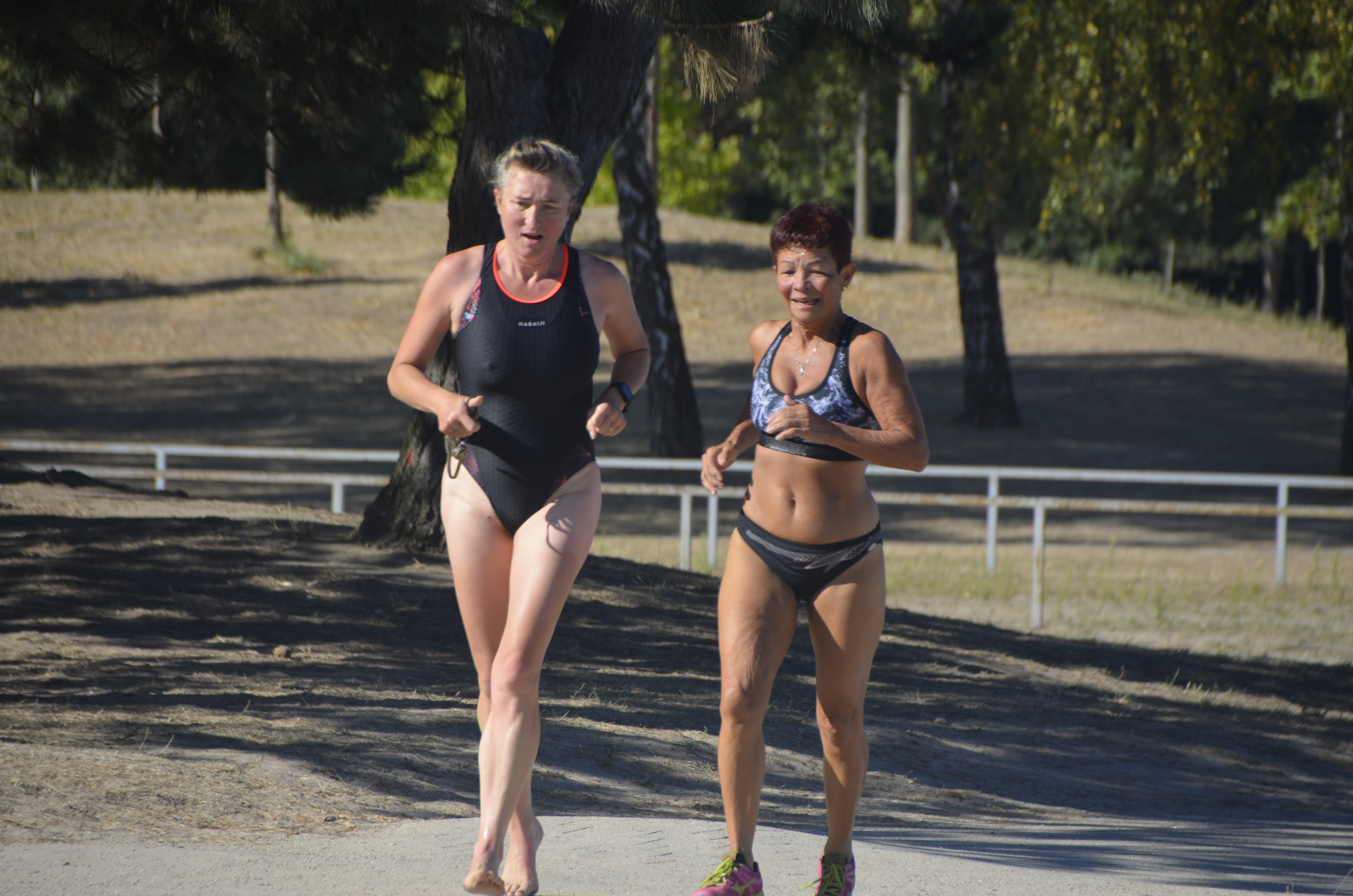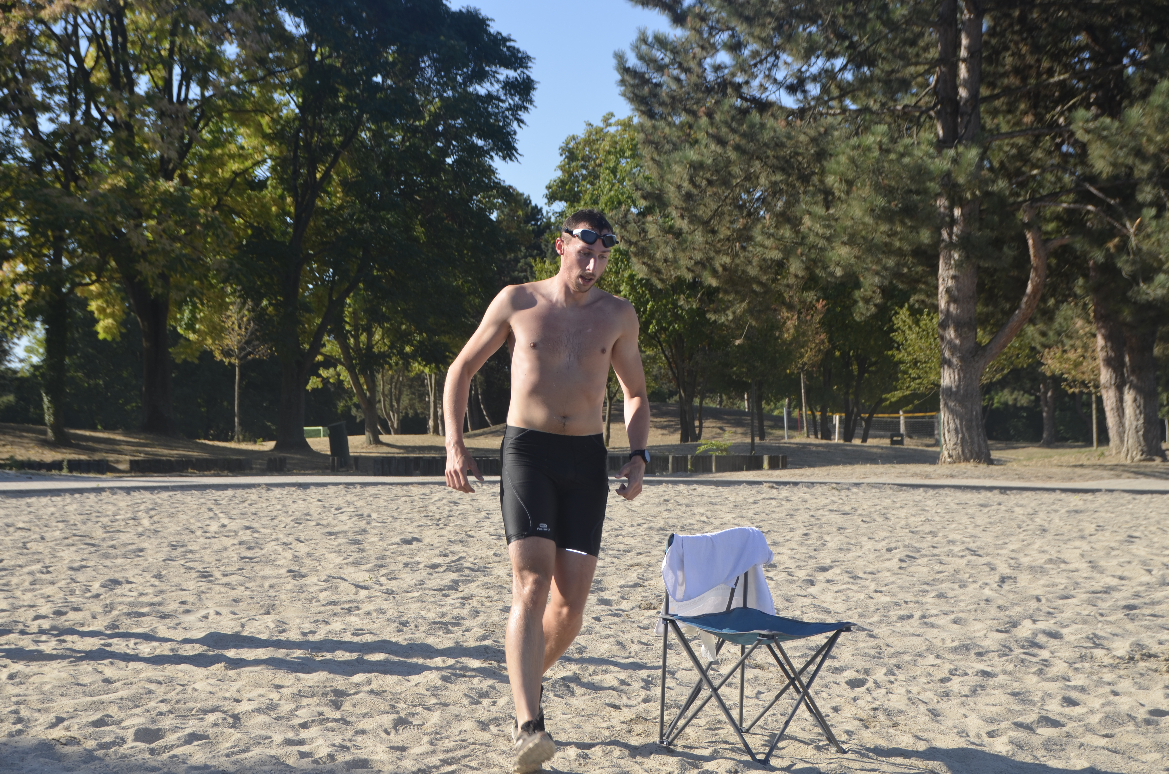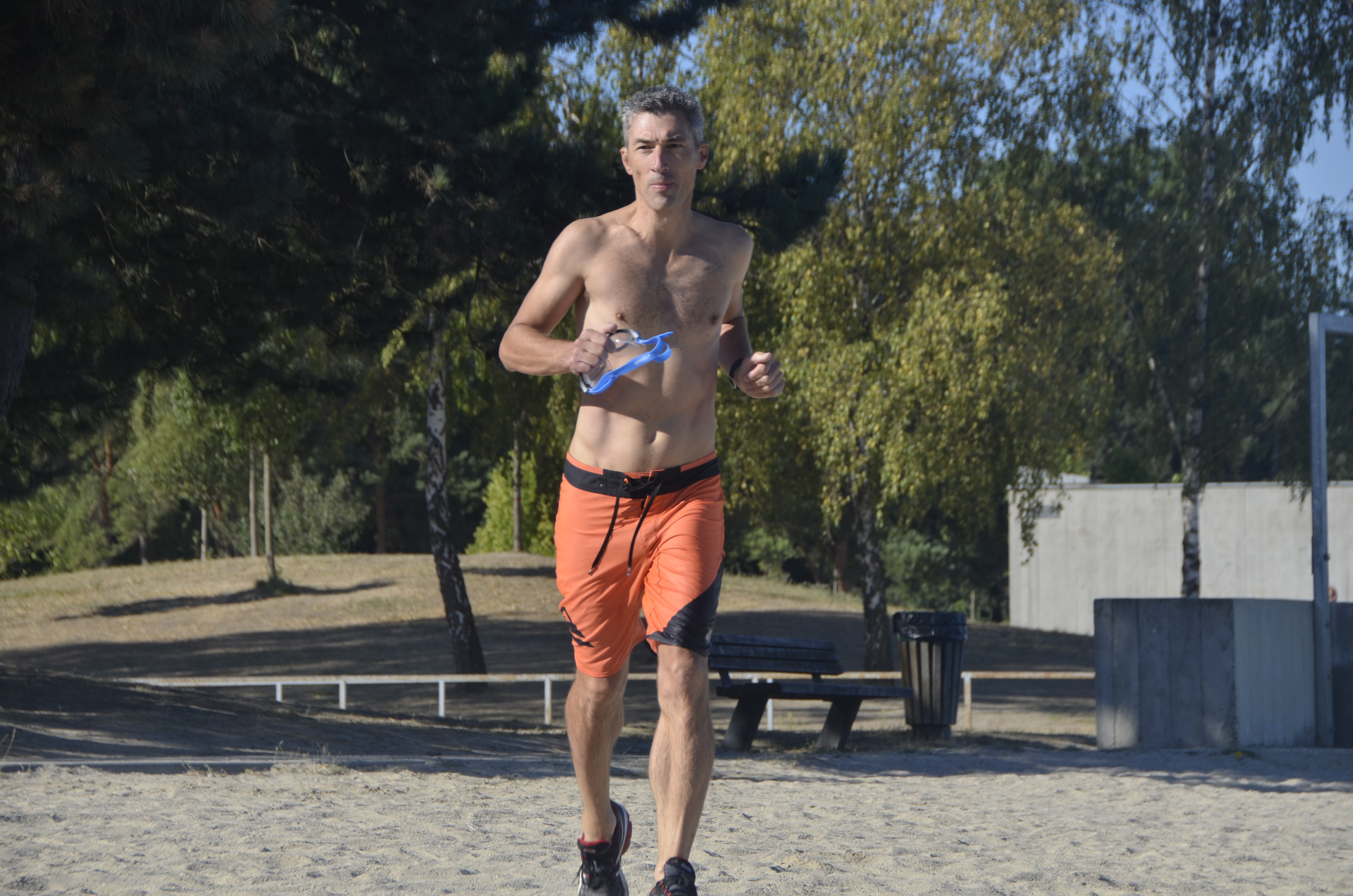 La première épreuve est une enchainement de 3 fois : Nage (150m) puis Course à pied (750m), en individuel.