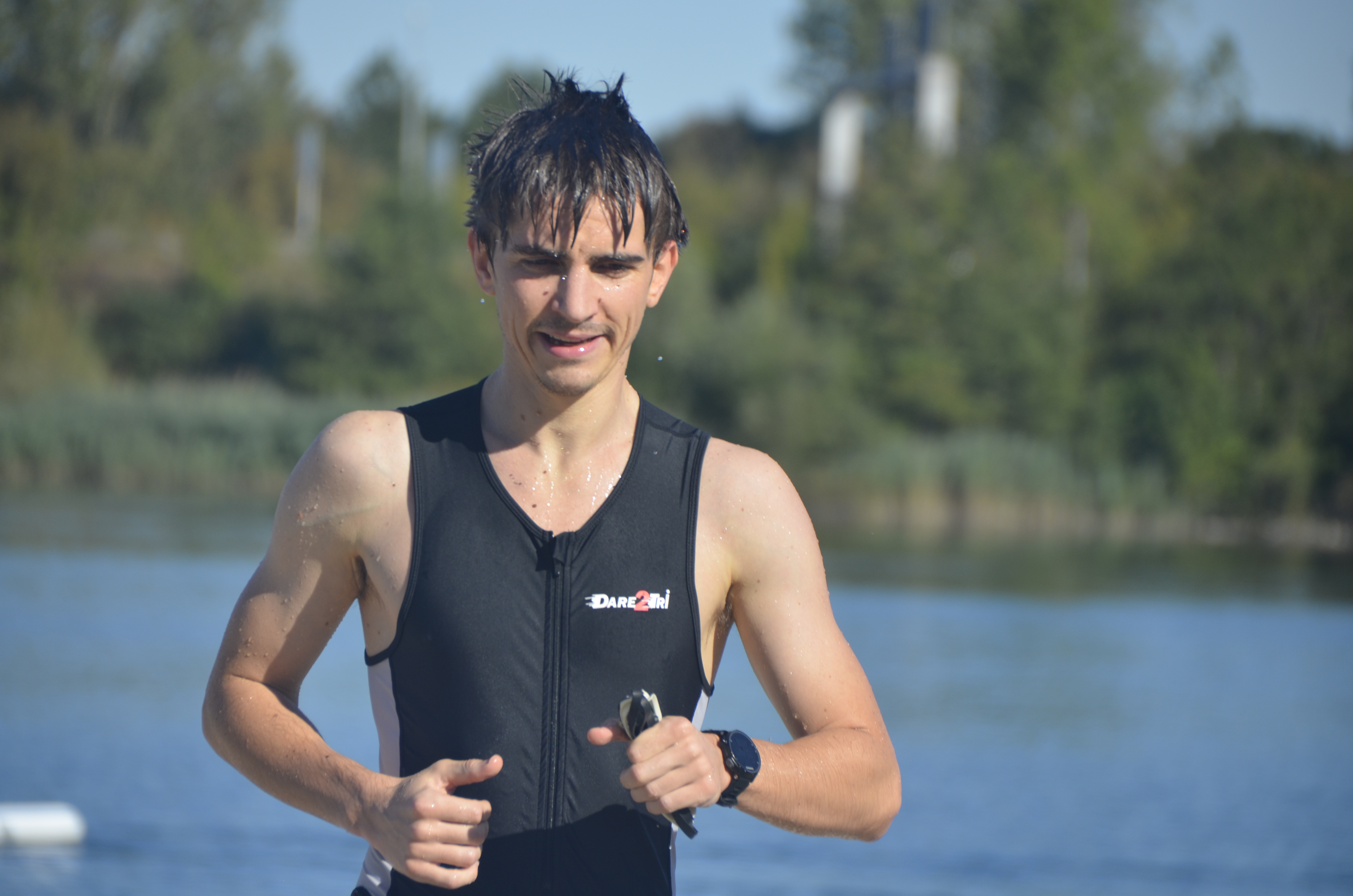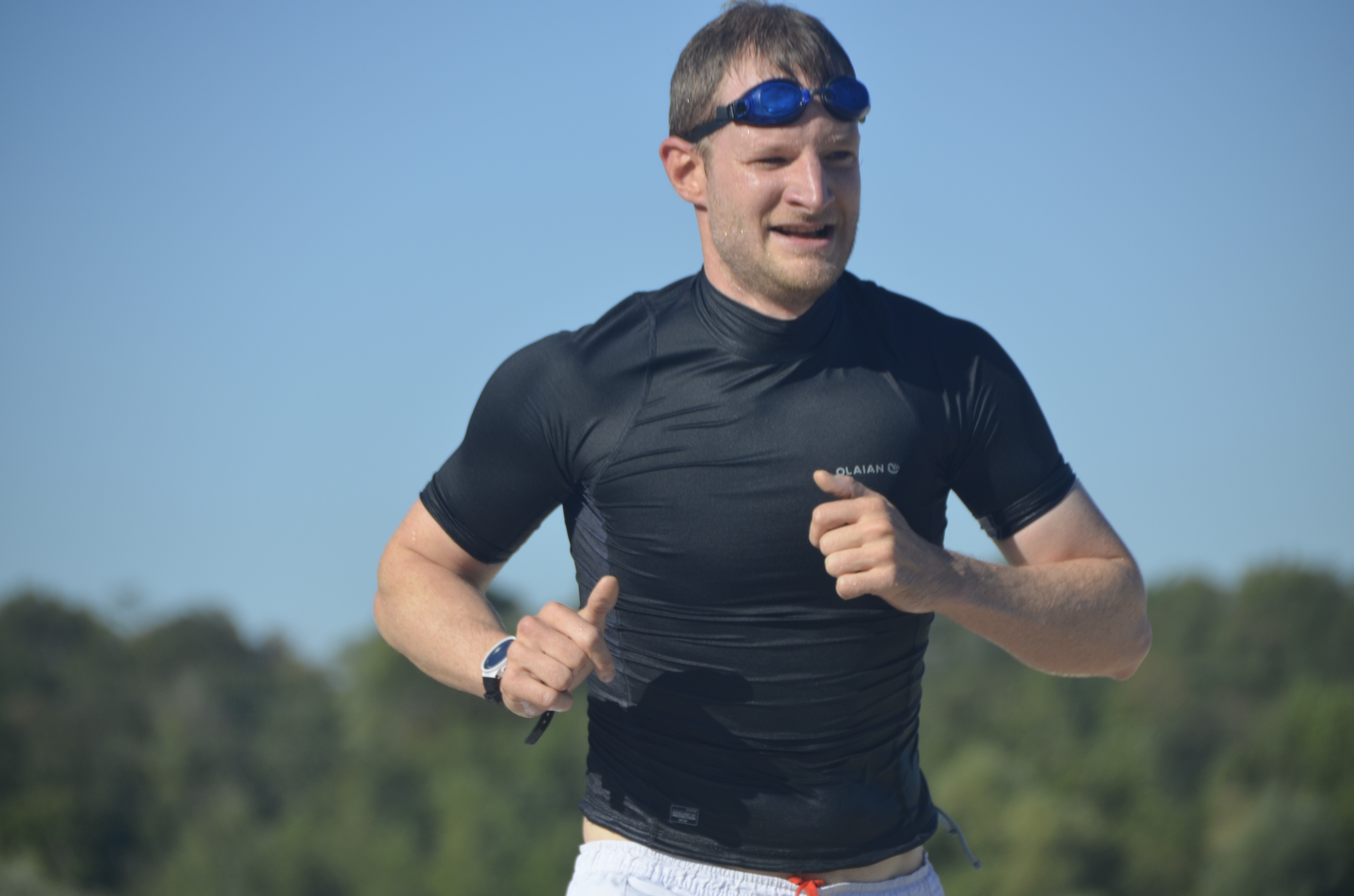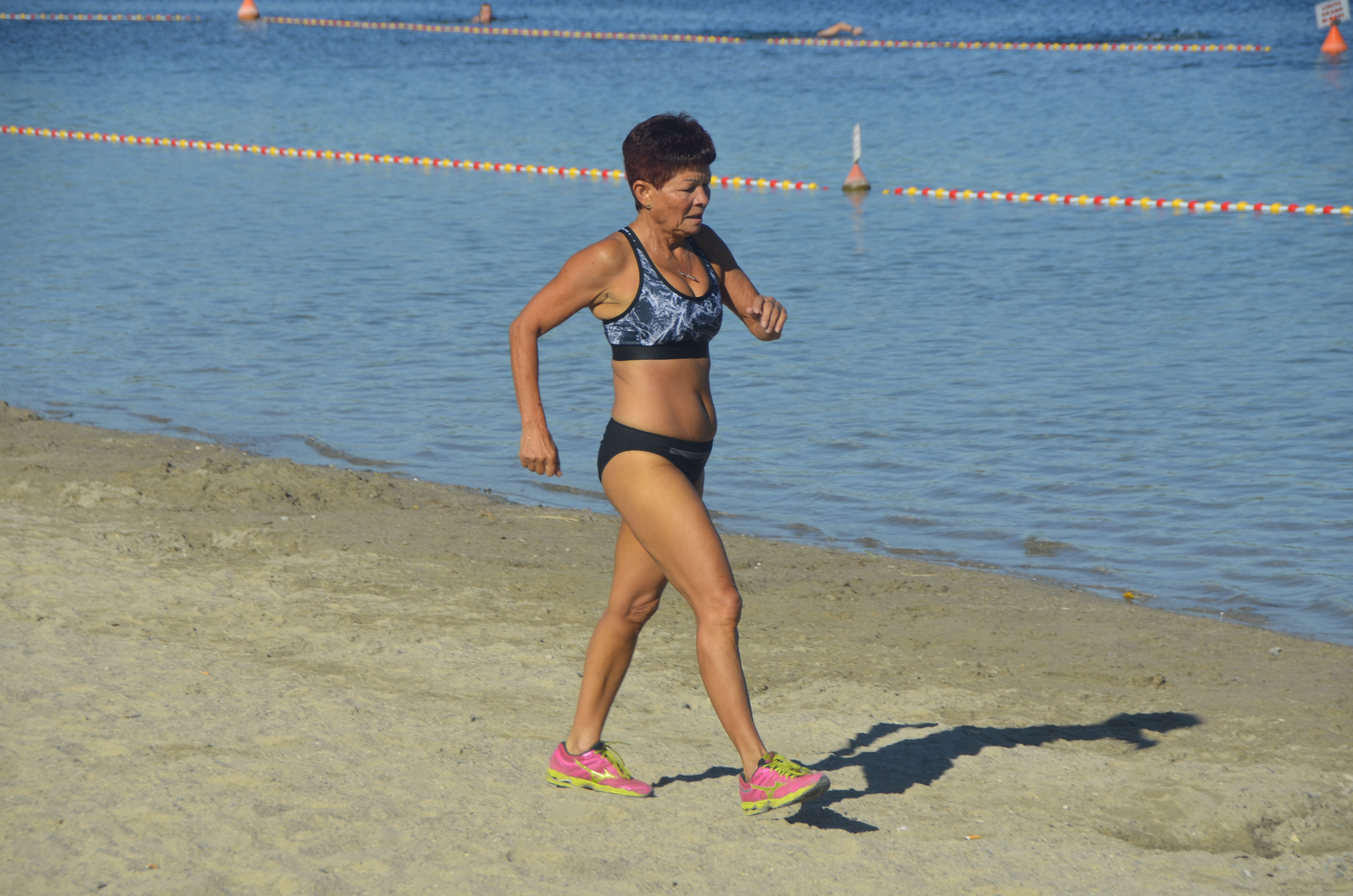 La première épreuve est une enchainement de 3 fois : Nage (150m) puis Course à pied (750m), en individuel.
