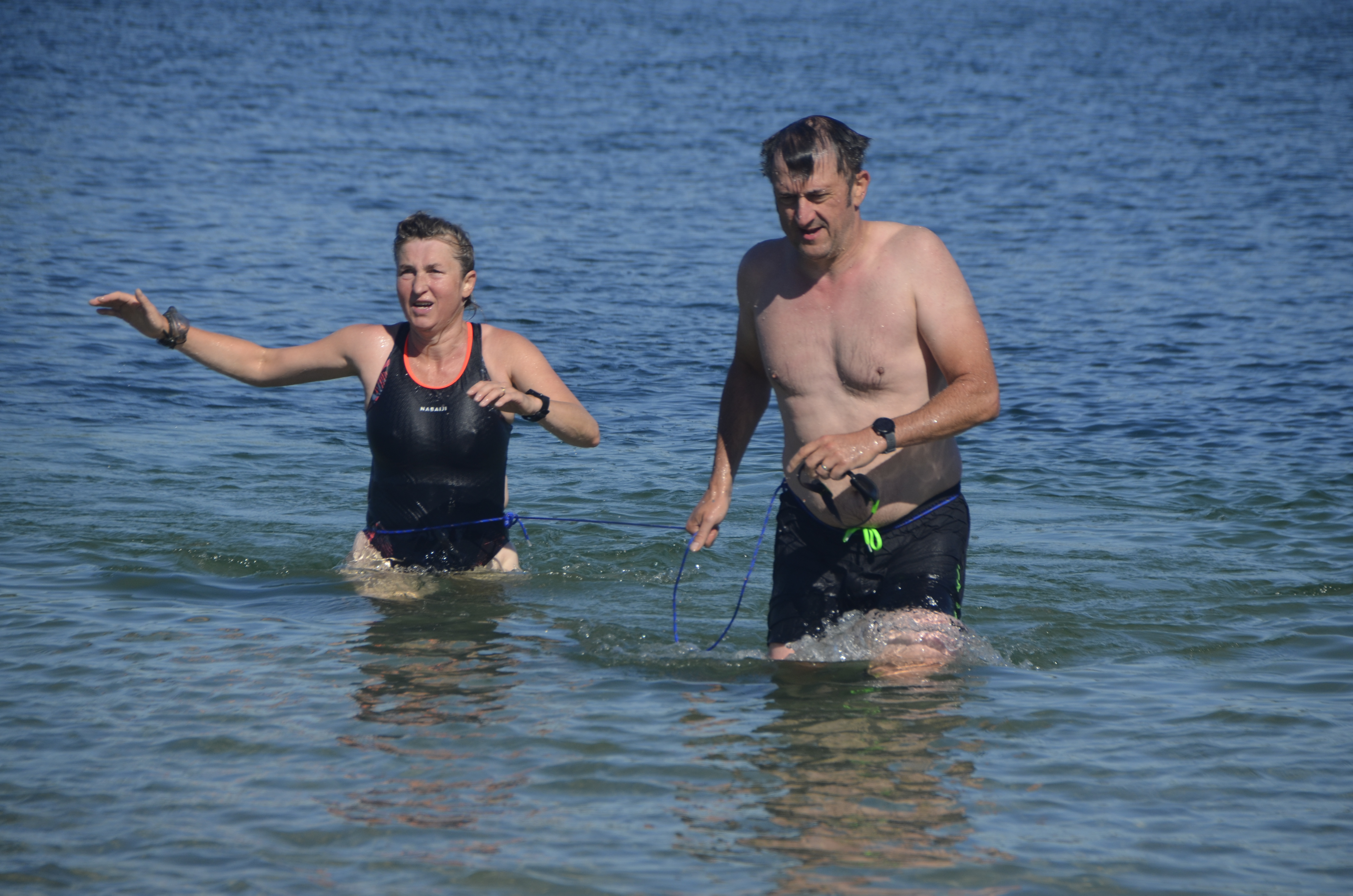 2km, ca va vite, les minutes sont courtes et le retour à l’eau arrive. L’ordre des binômes s’inverse à l’attaque de la seconde traversée, on voit les efforts sur les visages.