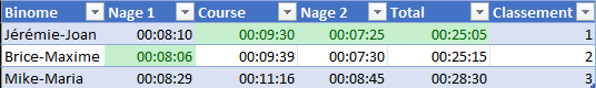 • Rachel et Julie pour le chronométrage, et la saisie des temps