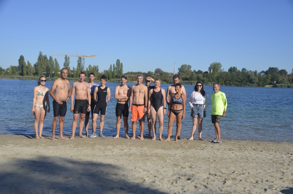 Une belle quinzaine de personne était au rendez-vous matinal de la plage du Lac en ce mardi Férié. Coureurs/nageurs mais aussi supporters, et photographes sur l’eau et sur terre.