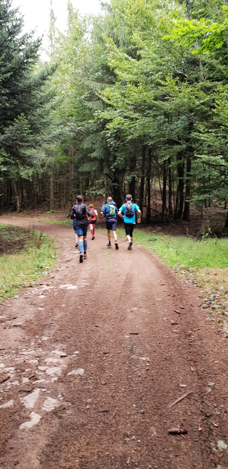 10h00 : 30km : Début de l’aventure pour le 3ème groupe accueillit au Col de Sainte-Marie par Myriam et Emmanuel qui tiennent le ravitaillement. Le départ est ardu pour cette distance, 2 bonnes montées / descentes sur sentiers de randonnées mettent les coureurs dans le tempo dès les premiers instants mais sont bien accompagnés par la tête du 50 pour ne pas partir trop vite, un bon groupe se forme.