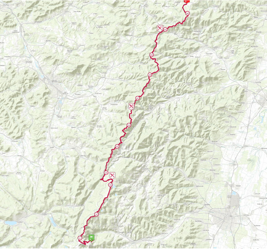 10h40 : 70km : La tête du 70 arrive au second ravitaillement à Sainte-Marie, ils réduisent l’écart avec les 50, on sent maintenant que les groupes vont se dépasser.